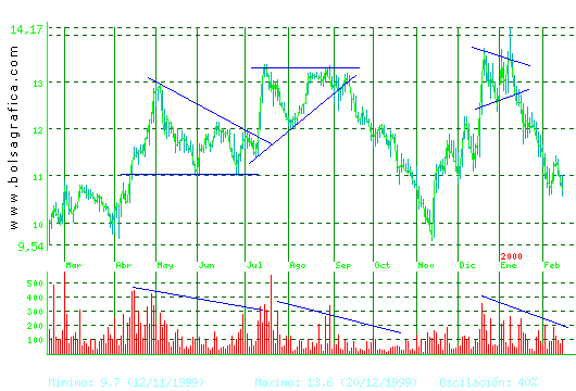 Hola una vez más queridos TRADERS, gracias por estar aquí con Miguel García en Wallstreet Andalucía aprendiendo a invertir en bolsa gratis. Hoy dedicaremos el capítulo a una nueva configuración gráfica llamada TRIÁNGULO. Esta figura como su propio nombre indica se da cuando los precios forman un triángulo o para mi punto de vista una flecha, es decir, el límite superior e inferior del precio converguen en un punto formando así la flecha o triángulo (OBSERVAR LA IMAGEN SUPERIOR). Puede valer como señal de inversión aunque más a menudo de continuación de la tendencia puesto que la convergencia del precio que está en tendencia en un punto hace que ese precio aumente su presión como una hoya a vapor y explotando de nuevo en el sentido de la tendencia.